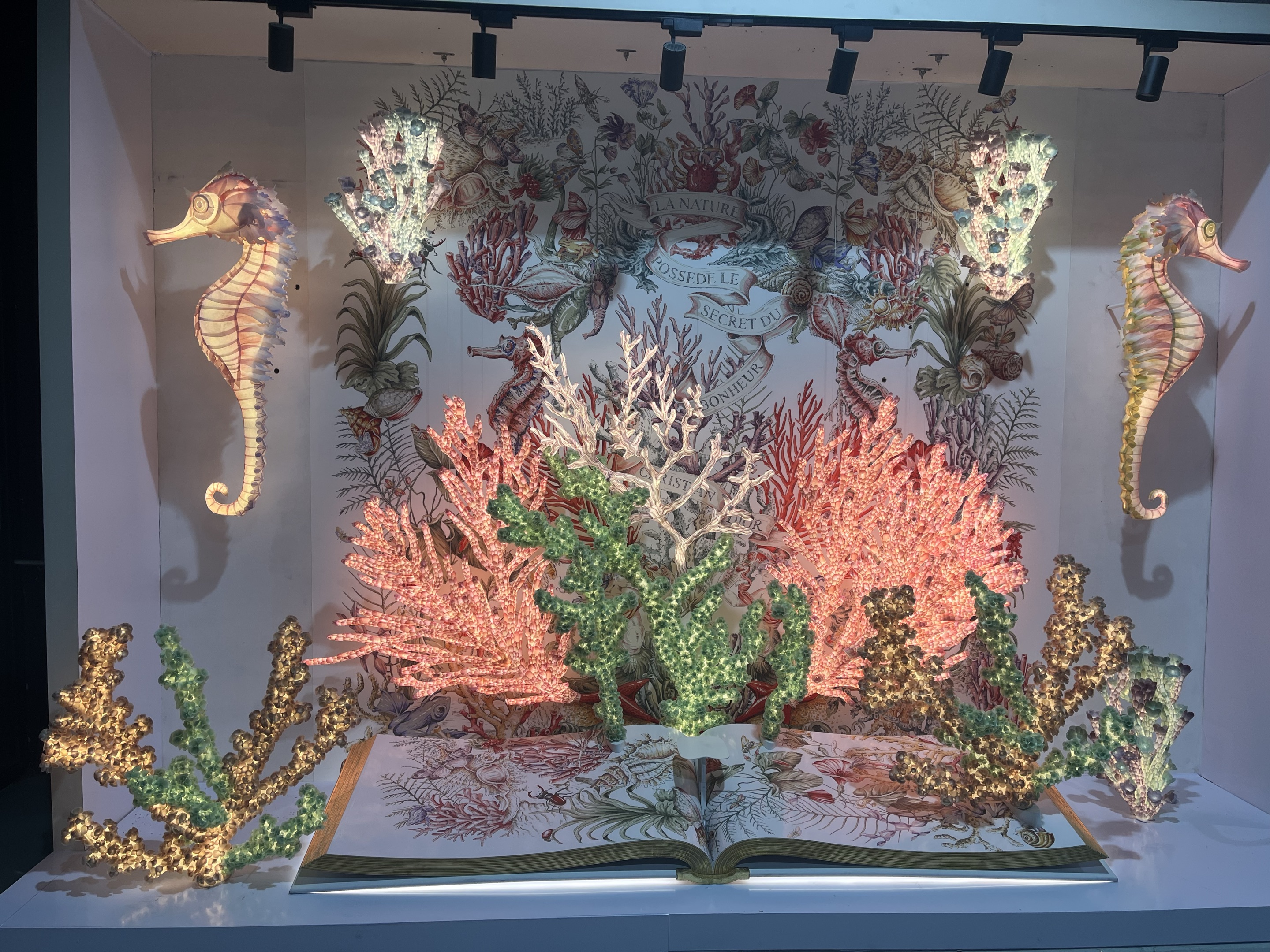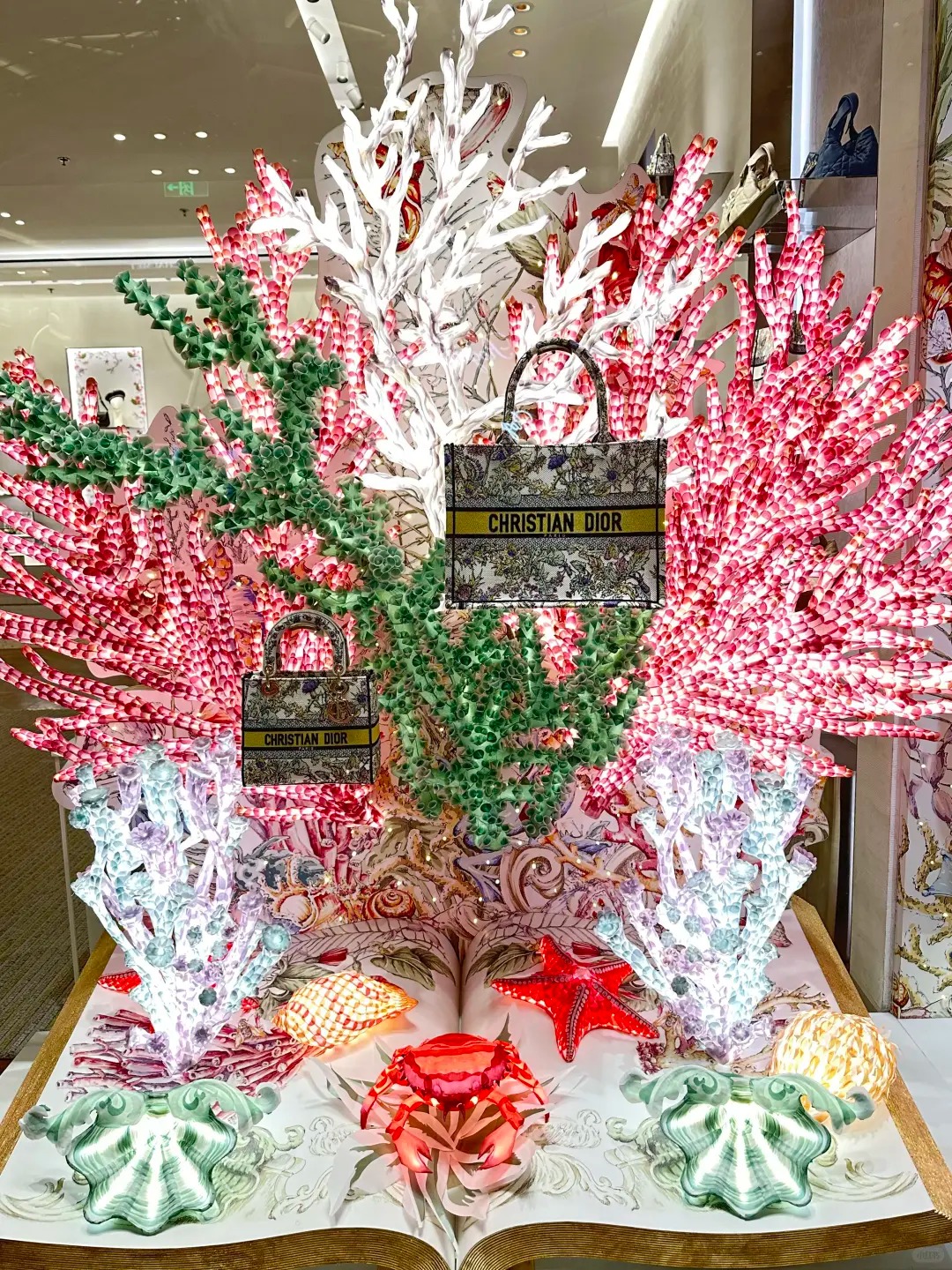 迪奥全新推出的2024圣诞节海洋系列橱窗展示令人耳目一新。橱窗设计灵感源自海洋的奇妙世界,运用色彩斑斓、形态各异的珊瑚造型,再现了海底的梦幻氛围。精致的装饰品与优雅的服饰交相辉映,仿佛让人置身于一场海洋的盛宴之中。